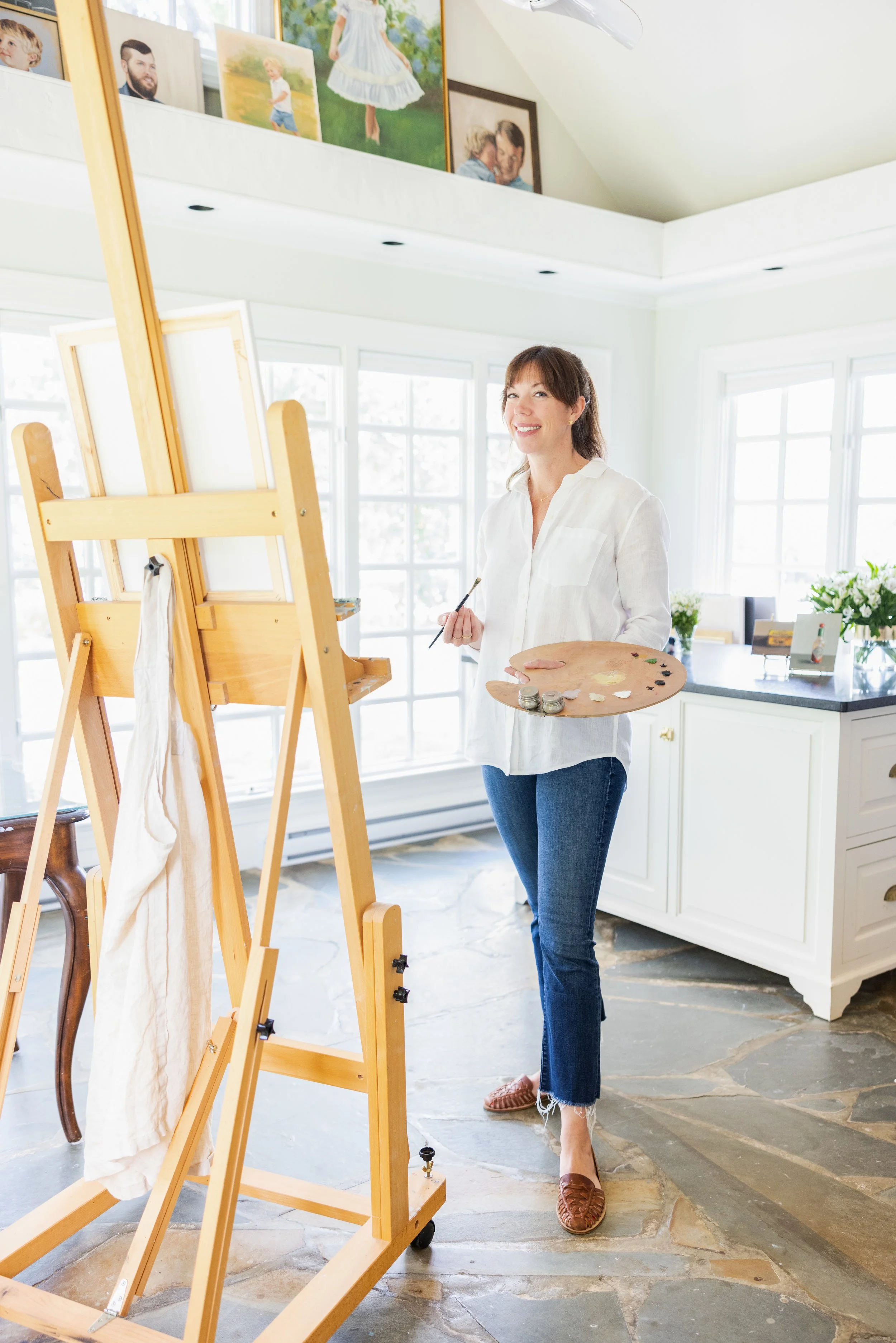 A native of North Carolina, Anna paints from her light-filled home studio in Winston-Salem, where she lives with her high school sweetheart turned husband, their spirited son, and their standard poodle, who happily serves as her studio assistant.